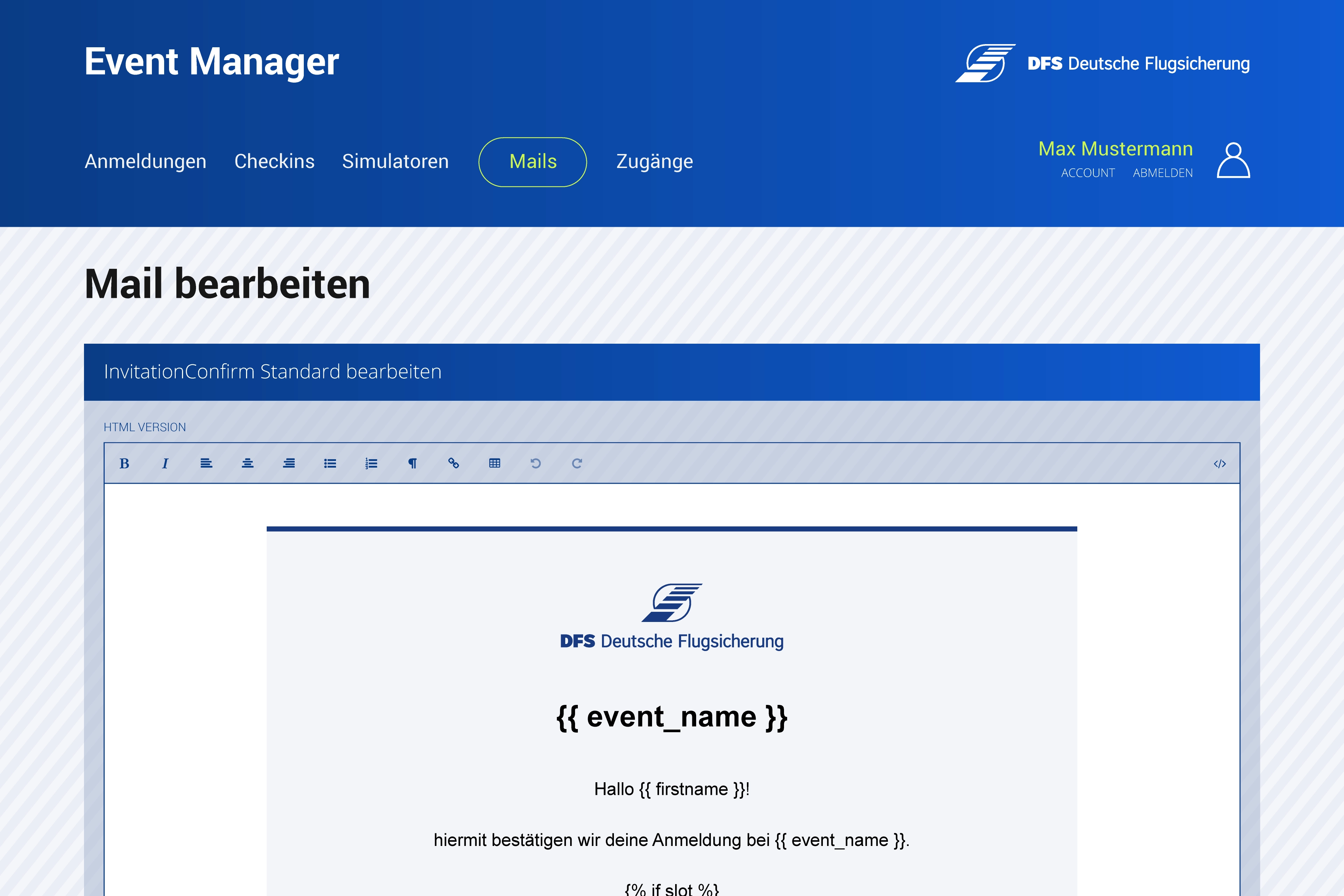 Der Event Manager ist ein Tool zur Verwaltung von Recruiting Events. Dieser ermöglicht die Verwaltung von Events, deren Anmeldemasken und deren Registrierungen. Zudem gibt es einige Automatisierungen wie beispielsweise das Senden von Eintrittskarten und Reminder-Emails an Teilnehmer.